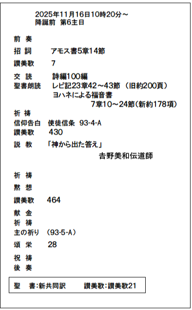 5.献金は、神様への感謝でありまた献身のしるしです。(金額にきまりはありません。)献金のご用意のない方は袋のままお出しください。
