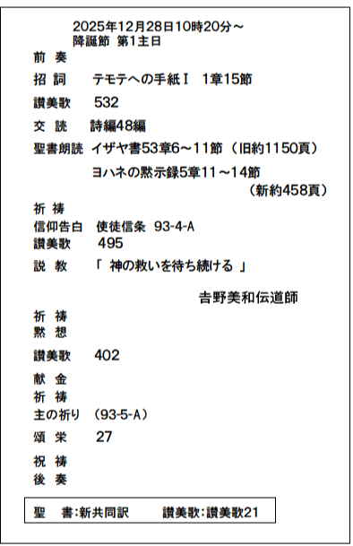 | 水曜 | 祈 り 会 午前10:00~ |